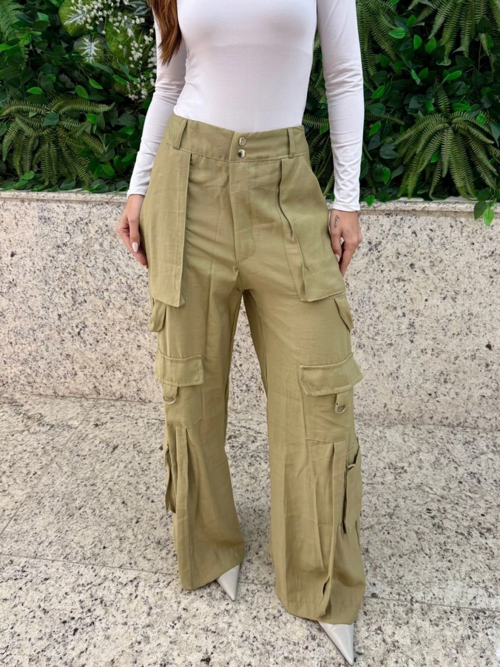 Calca cargo trazida do universo militar para a moda, com estilo oversized e streetwear, no tecido alfaiataria premium, apresentando mais praticidade com os seus 6 bolsos sem abrir mão do visual estiloso e de sucesso.